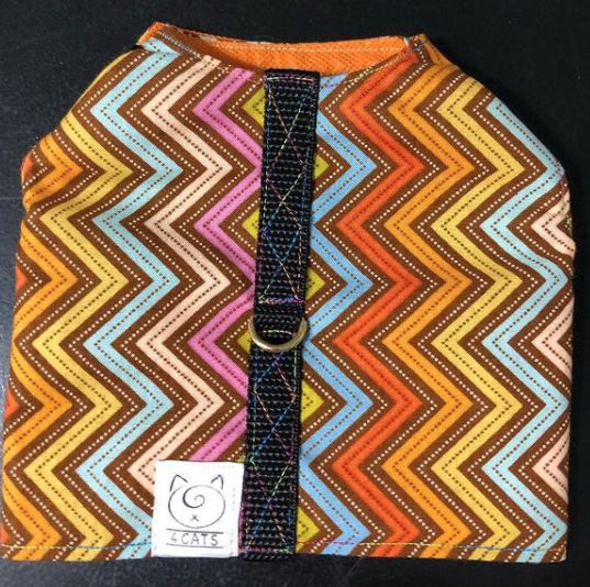 This harness doesn’t go over the neck, so it is fairly easy to put on the cat. - Fun patterns