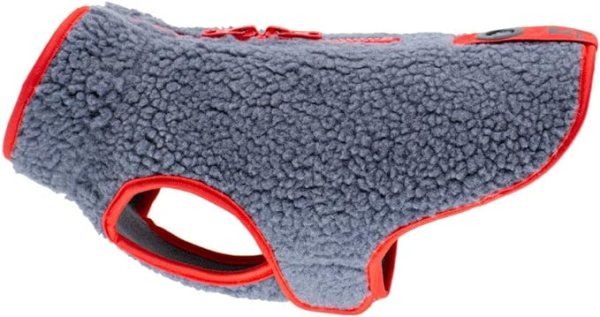This fleece is a little roomier than the baseline fleece, but is thicker and has a zippered leash opening which makes it easier to attach the leash.