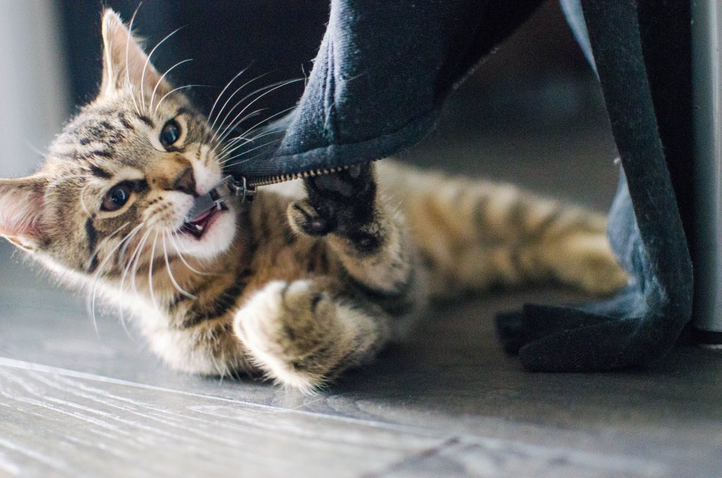 In general, you should try to start adventure training as young as possible, as long as they are healthy, vaccinated, and trained. Kittens should complete their course of vaccines before they are exposed to the outdoors, as there are illnesses that could make them very sick. They should also have completed their harness and leash training (with a good fitting harness), as well as backpack training, before you attempt to bring them outside. This means that the best time to start is around 4 to 6 months old. If you’ve missed this age period, it doesn’t mean that you can’t train them anymore, but it means that it may be a little more difficult or take longer to train. Young kittens are more of a blank slate, and will usually just accept whatever situation they’re in, and think nothing of it. Most of the time kittens will happily accept that going outside equals being on a leash, because they don’t know any better.